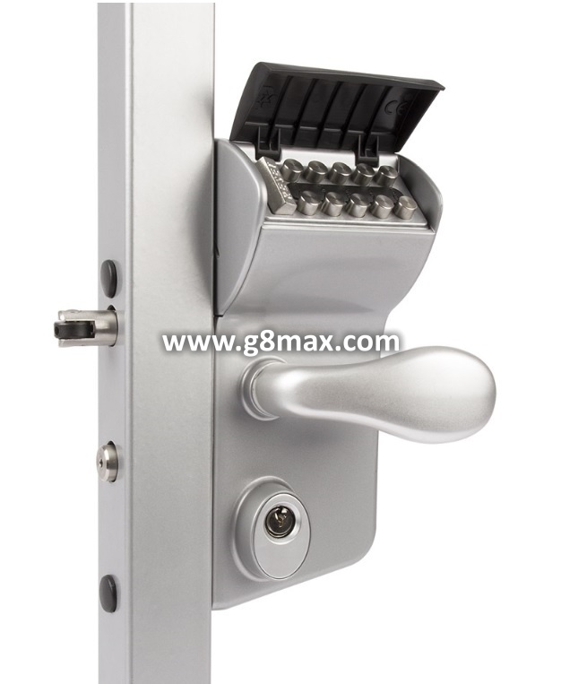 * High quality mechanical code lock with aluminum body and stainless steel mechanism.