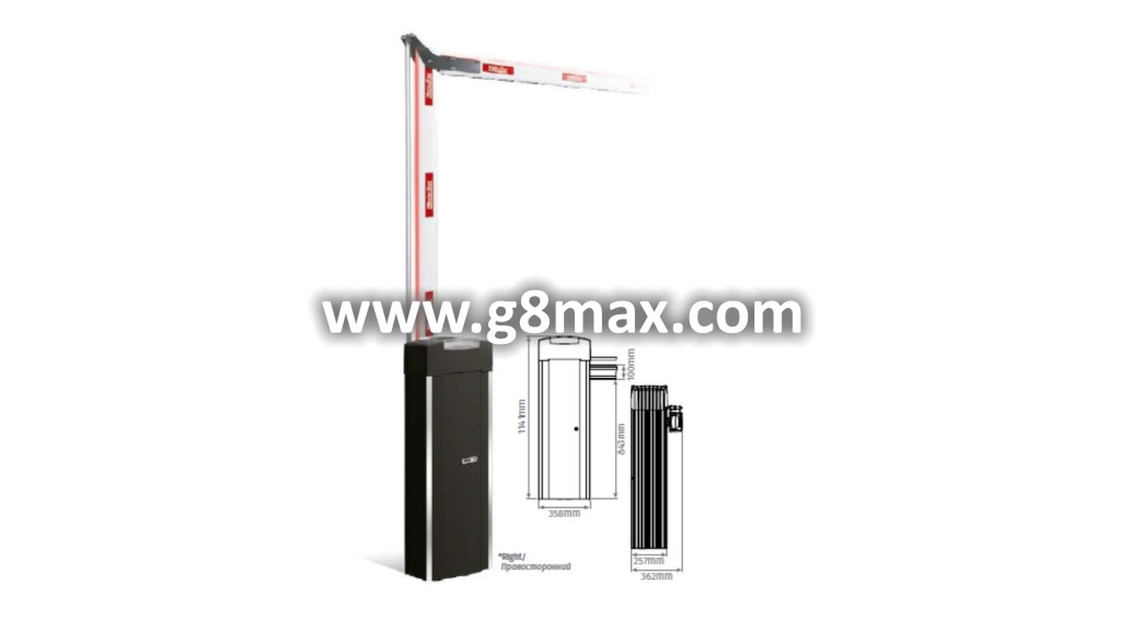 Brushless electromechanical barrier with zincor steel structure and lacquered aluminum outer coating for articulated boom up to 5m and 6m.