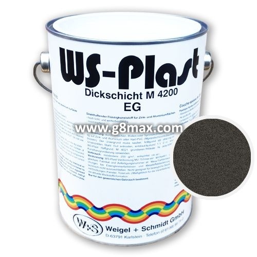 WS-Plast M 4200 ist ein VC-Copolymer, das auch ohne Verwendung der Grundierung eine direkte Verbindung mit Zink- und Aluminiumoberflächen eingeht. Der Farbstoff eignet sich für feuerverzinkte und andere Stahlkonstruktionen sowie nicht anodisierte Aluminiumoberflächen. Der Farbstoff ist staubfrei ca. 20 Minuten nach dem Auftragen, aber berührungssicher ca. 2 Stunden nach der Anwendung. Den Farbstoff trocknet sich vollständig innerhalb von 1-2 Tagen. Es trocknet sich in einer Räuchenkammer bei 70°C ca. 30 min.
