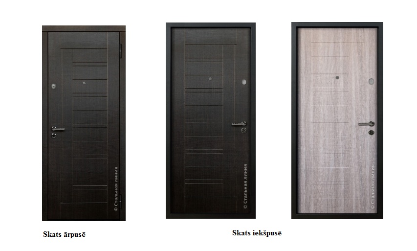 Isolierung für Türrahmen und Türblatt: Watte KNAUF 50mm. Schlösser: Apecs T-47+ Apecs T42 + Nachtsperre. Griff Palidore. Schalldämmung 32dB. Metalldicke -1,2mm. 2 Dichtungsschleife - Cyclone. Verdeckte, speziell gefertigte Härtenrippen verhinder das “Biegen“ der Türecken und blockieren den Zugang zu dem Teil der Tür, an dem sich das Verriegelungssystem befindet. Gegen die Entfernung des Riegels mit einem Durchmesser von 15 mm, wird es durch das Abschneiden der Scharniere verhindert, dass die Tür sich öffnet. Biegefestigkeit 1200kg. Außenansicht: MDF 10mm, Furnier "dunkle Wenge"